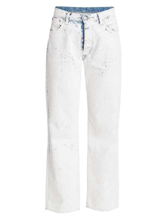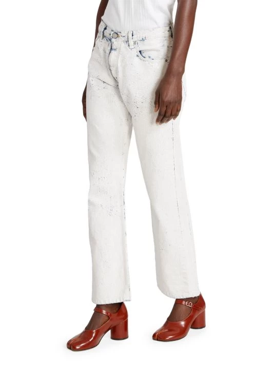 The classic straight-leg jean is elevated with a unique handpainted effect.
