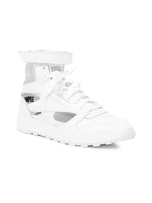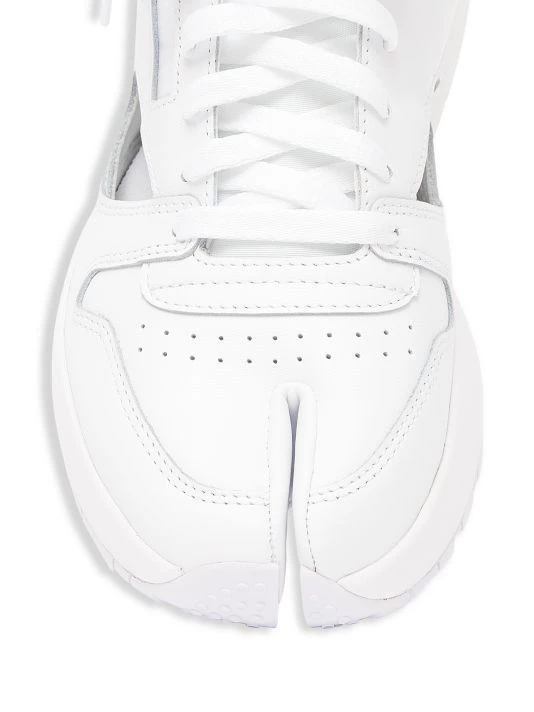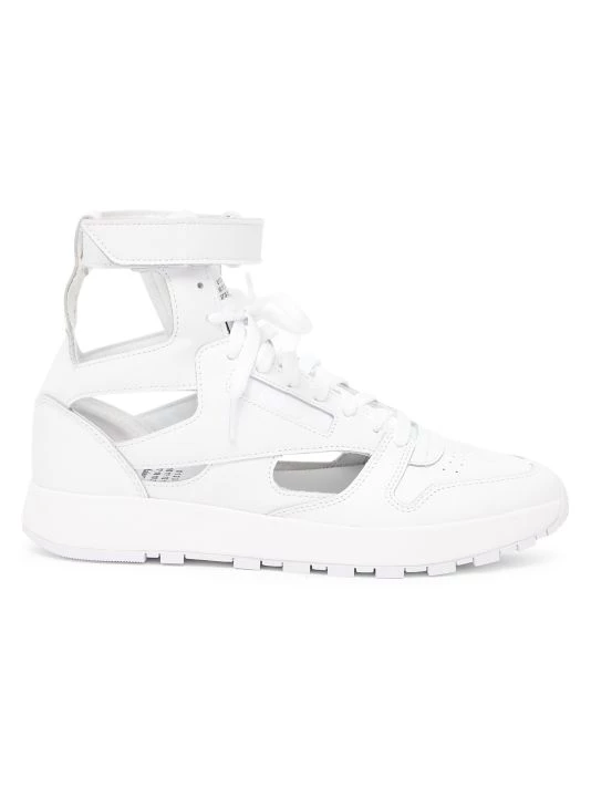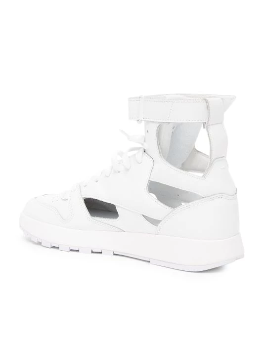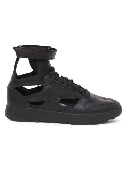 From the Maison Margiela x Reebok Collaboration. Crafted of smooth leather, these gladiator sneakers are detailed with geometric cutouts and the iconic split-toe.