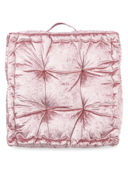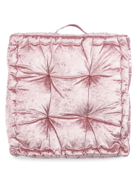 Sparkling rose gold accent pillow doubles as a soft cushion making it an ideal seat made with shimmering fabric and includes a cloth handle for easy transport.