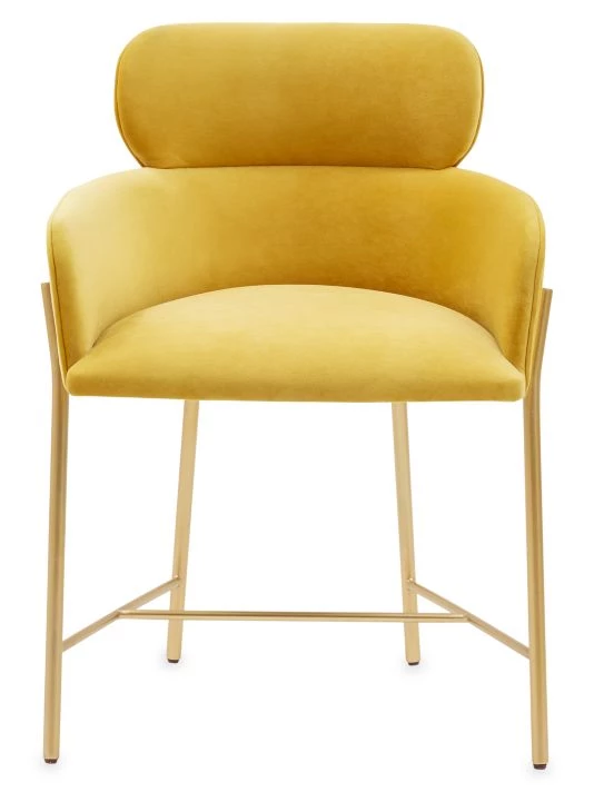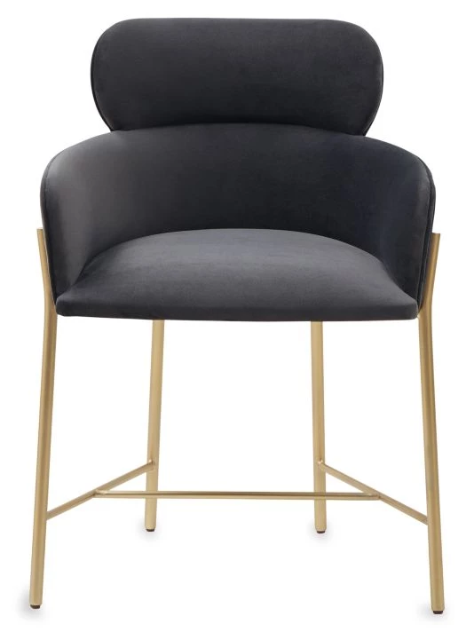 Bring living room comfort to the dining room table with this Charlize Dining Chair. A new contemporary icon, Charlize takes inspiration from the classic club chair for unparalleled luxury, its wraparound silhouette absolutely divine in plush velvet. An open gold frame gives a touch of penthouse glamour.