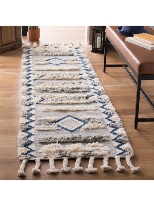 From the Kenya Collection. Add a well-traveled look to any room with artfully detailed Kenya collection rugs. Hand-knotted of wool in un-dyed natural shades or vibrant colors, the layers of texture in these tribal designs are achieved with thick, over-stitched cut pile yarns.